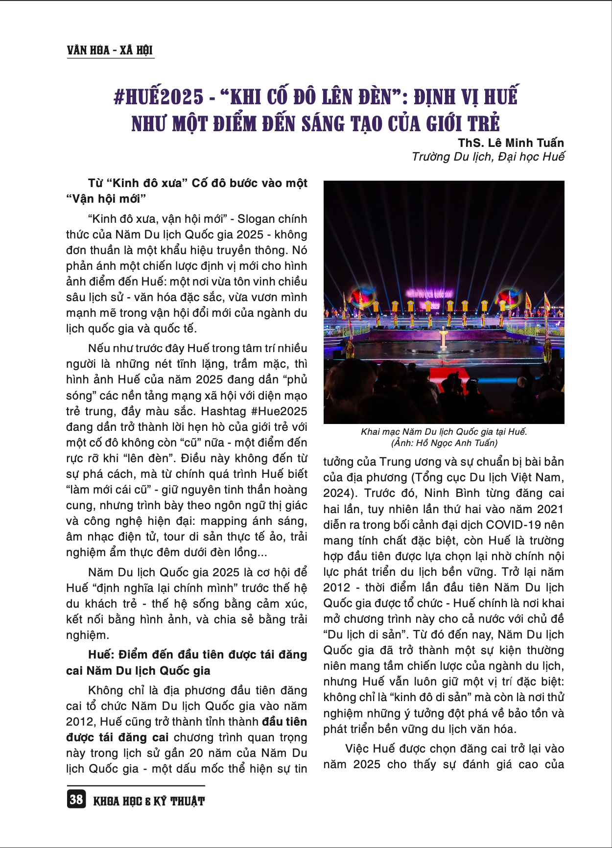 Tên bài báo: | #HUẾ2025 – Khi Cố đô lên đèn: Định vị Huế như một điểm đến sáng tạo của giới trẻ | ||||||||||||||