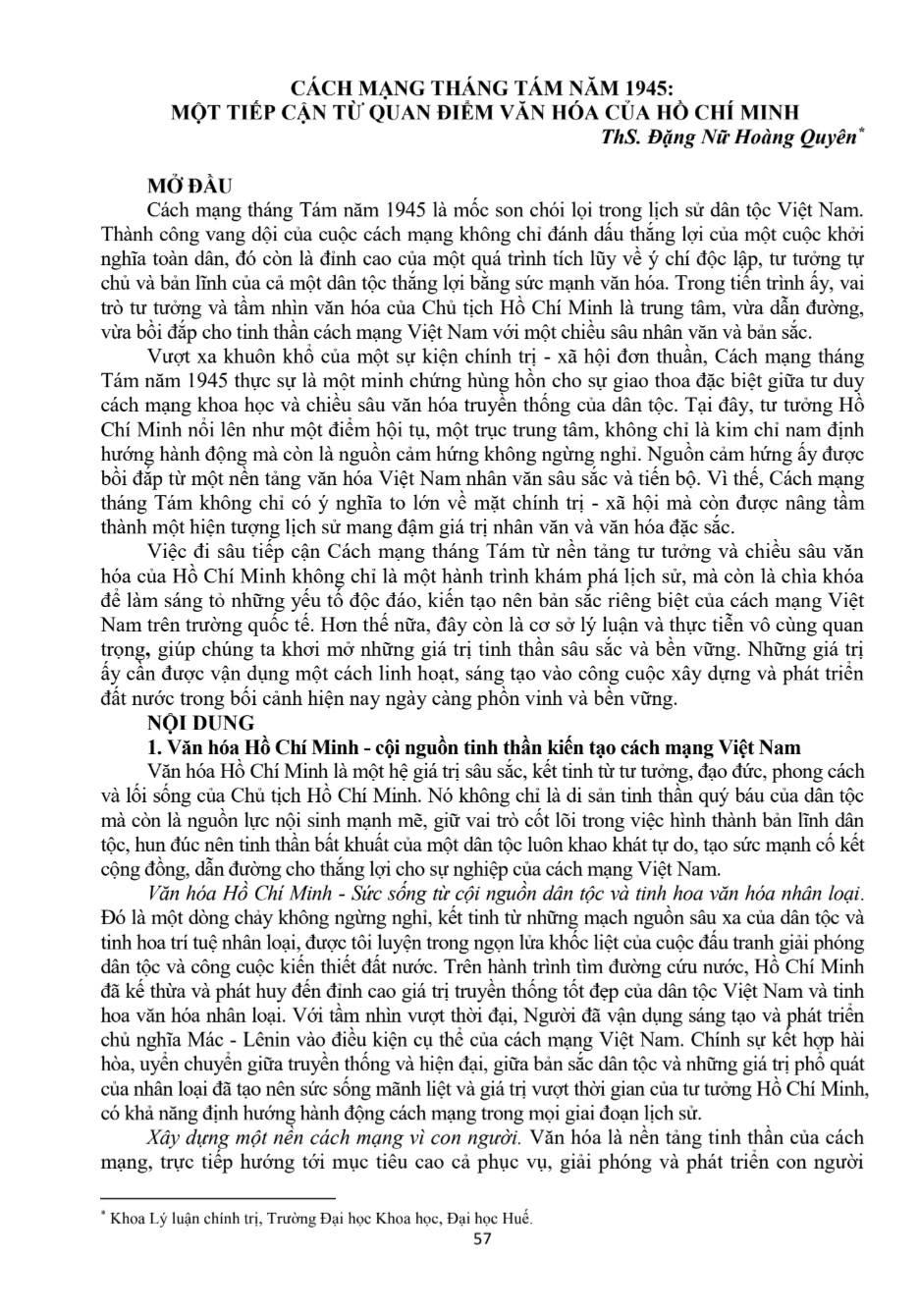 Tên bài báo: | Cách mạng Tháng Tam năm 1945: Một tiếp cận từ quan điểm văn hóa của Hồ Chí Minh | ||||||||||||||