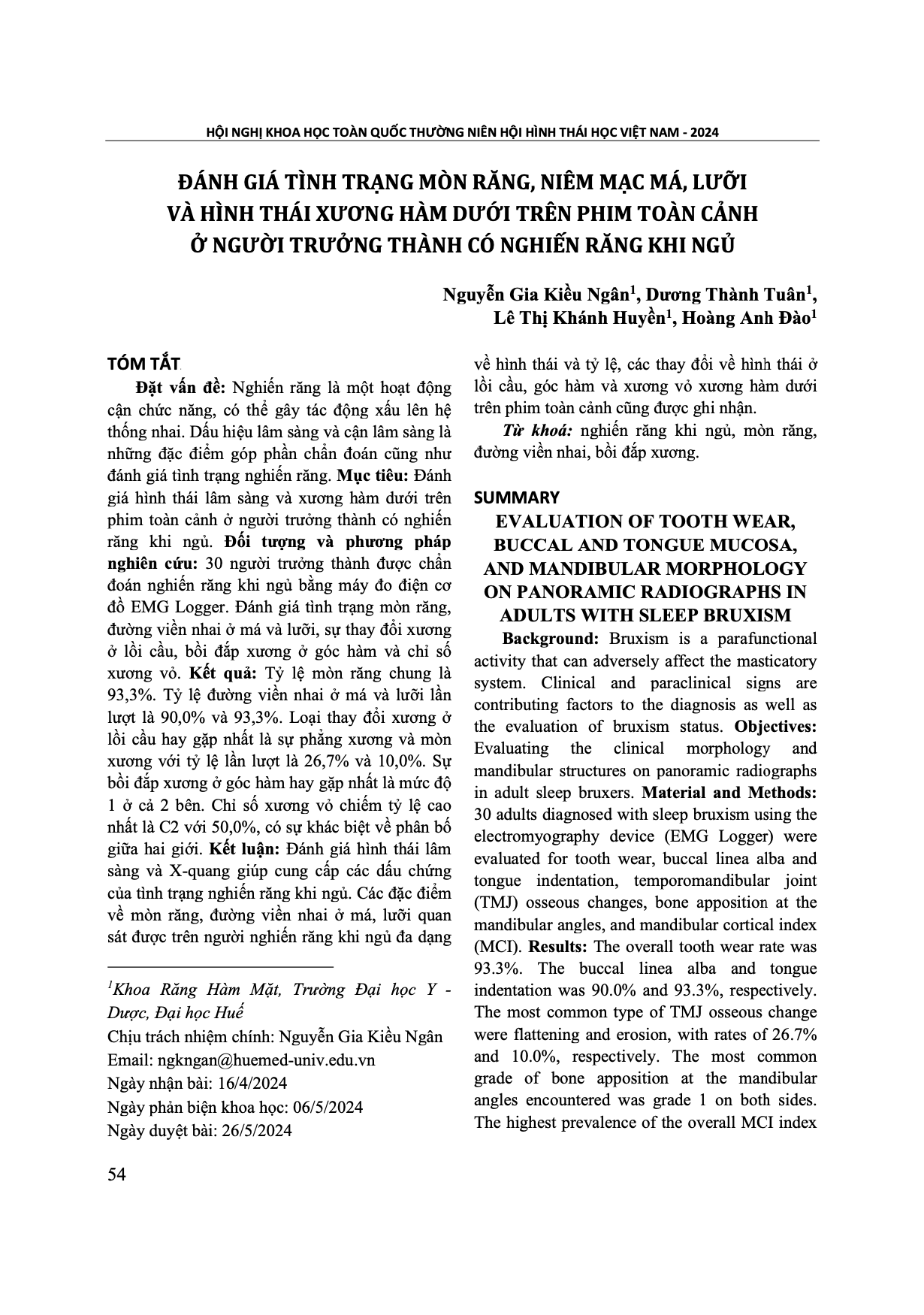 Đánh giá tình trạng mòn răng, niêm mạc má, lưỡi và hình thái xương hàm dưới trên phim toàn cảnh ở người trưởng thành có nghiến răng khi ngủ |